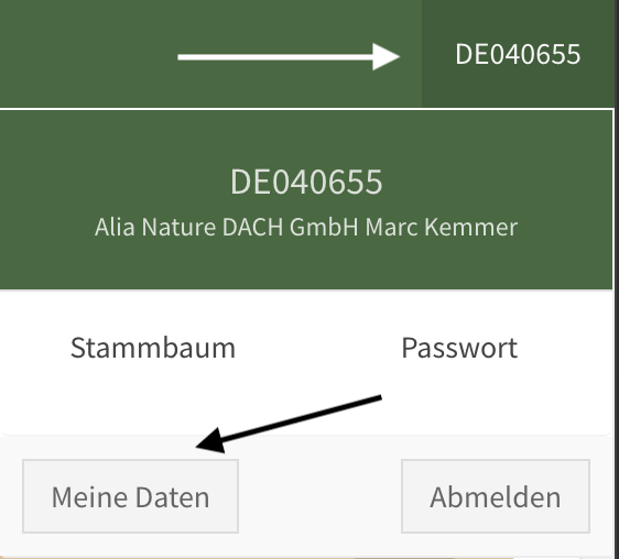 Deinen aktuellen Link Namen siehst Du im Alia Office (office.alianature.shop). Klicke hierzu auf Deine Partnernummer rechts oben in der Ecke und dann auf "Meine Daten".